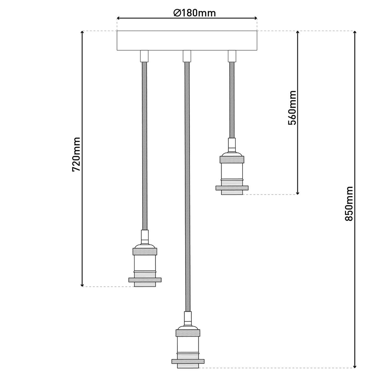 3 Metal Baldachin "Ontario" decoratieve hanglamp gemaakt van metaal in alt-messing en jute, E27-versies, verlichting voor woonkamers of kantoor.