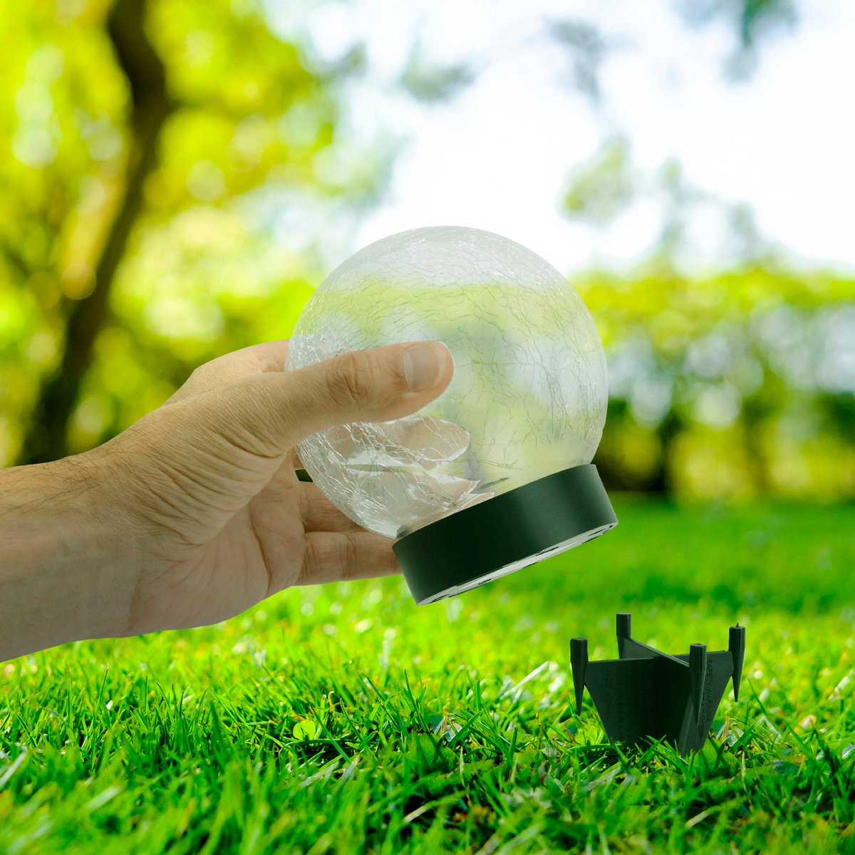 3 Set LED LED Solar Table Lamp/Aand Skeer "Crackle" Ø 12 cm, voor buiten, taflamp-plastic en glas, wit, met geïntegreerde LED