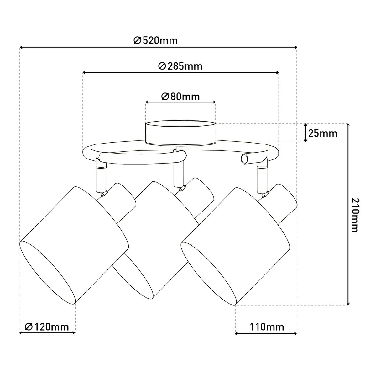 3-zits muur en plafond Rondel "Maron" gemaakt van metalen-satine-meter met stof paraplu's in de natuur, met E14-versie, lamp voor woonkamer, eetkamer, gang en kantoor, 28,5 cm diameter