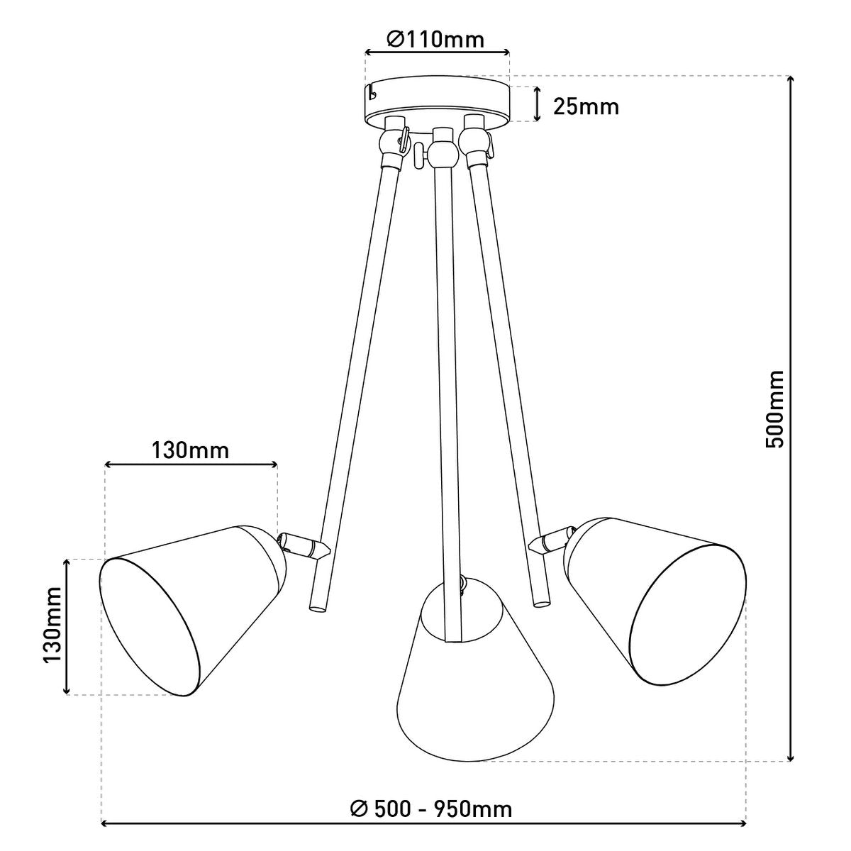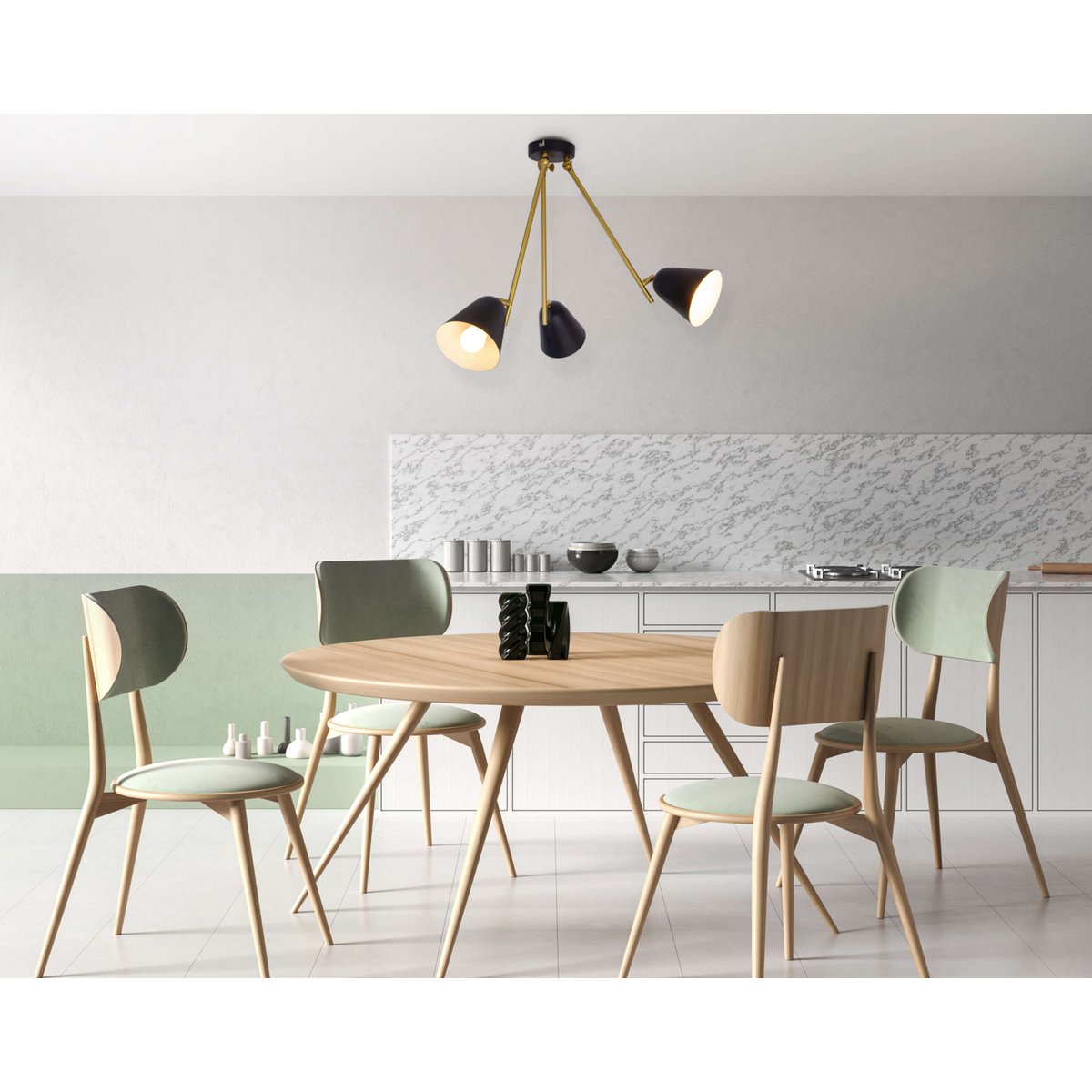 3-zits plafondlicht "Triton" gemaakt van black metal met E27-versie, verlichting voor woonkamer, eettafel of kantoor