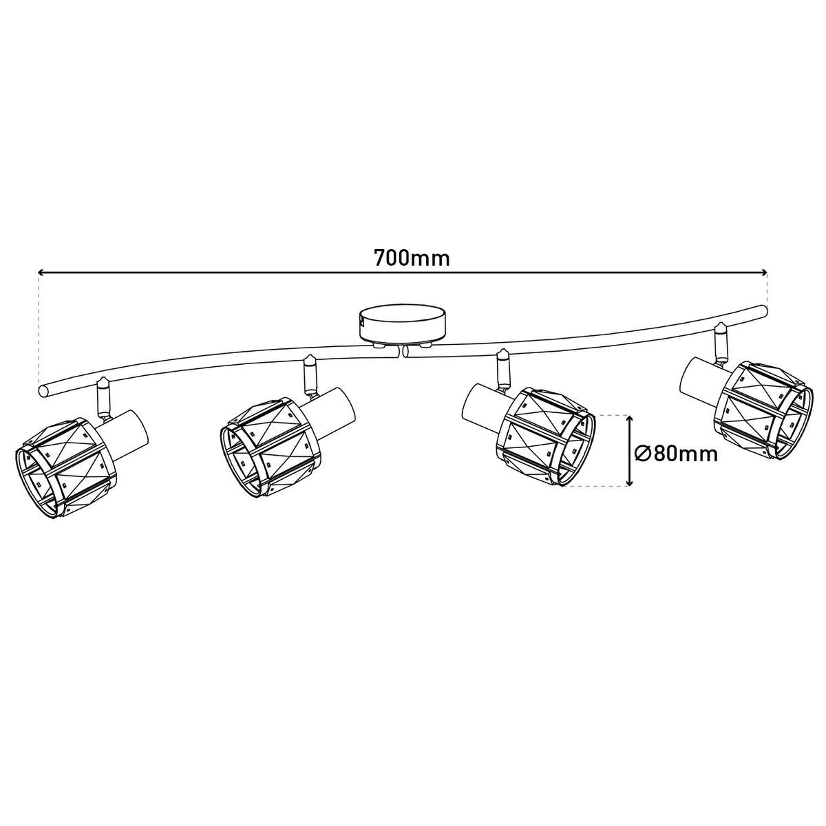 4-geleide plek "Josefa" met E14-versie Filament, metalen plafondlamp en glas in roestvrijstalen look, met E14-versie Filamentlampen inbegrepen, lamp voor woonkamer, eetkamer, gang of gang 70 x 8 cm