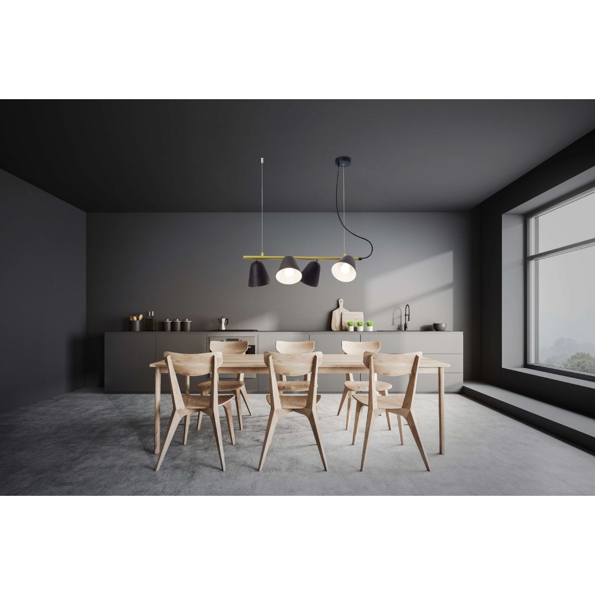 4-pending lamp "Triton" gemaakt van zwart metaal in zwart, met E27-aansluiting, verlichting voor woonkamer, eetkamer of kantoor.