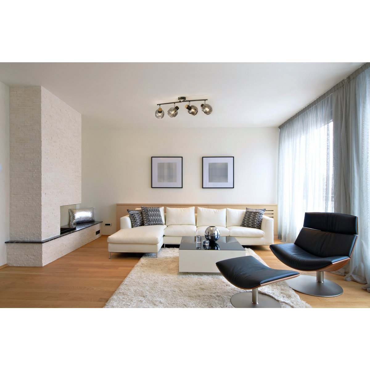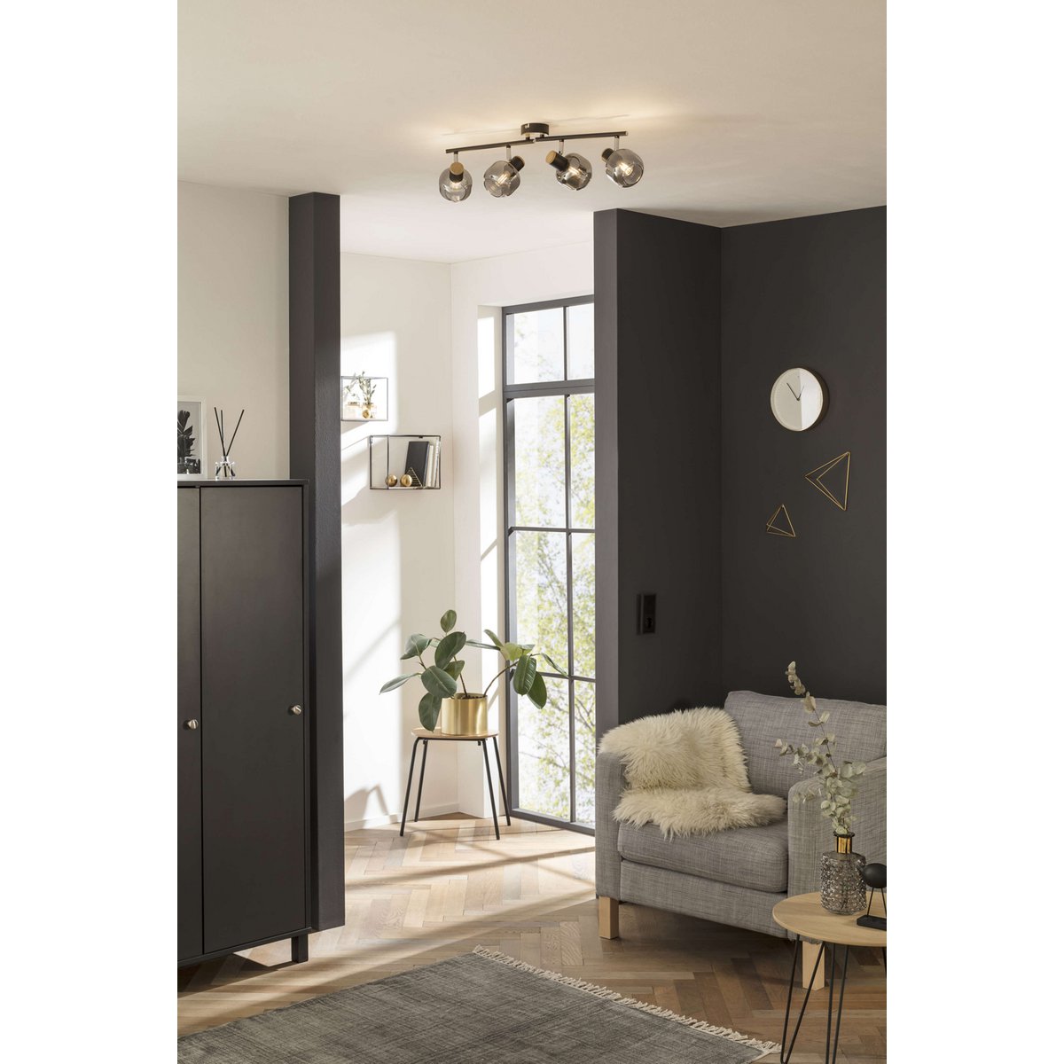 4er spot plafondlamp "fumoso", plafondlamp gemaakt van metaal en rookglas in zwart, met E14 -aansluiting, voor eetkamer, woonkamer, gang of kantoor, 80 x 20 cm