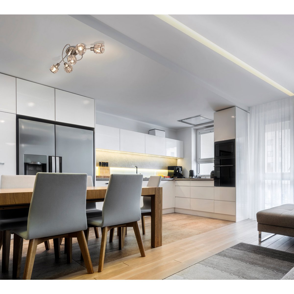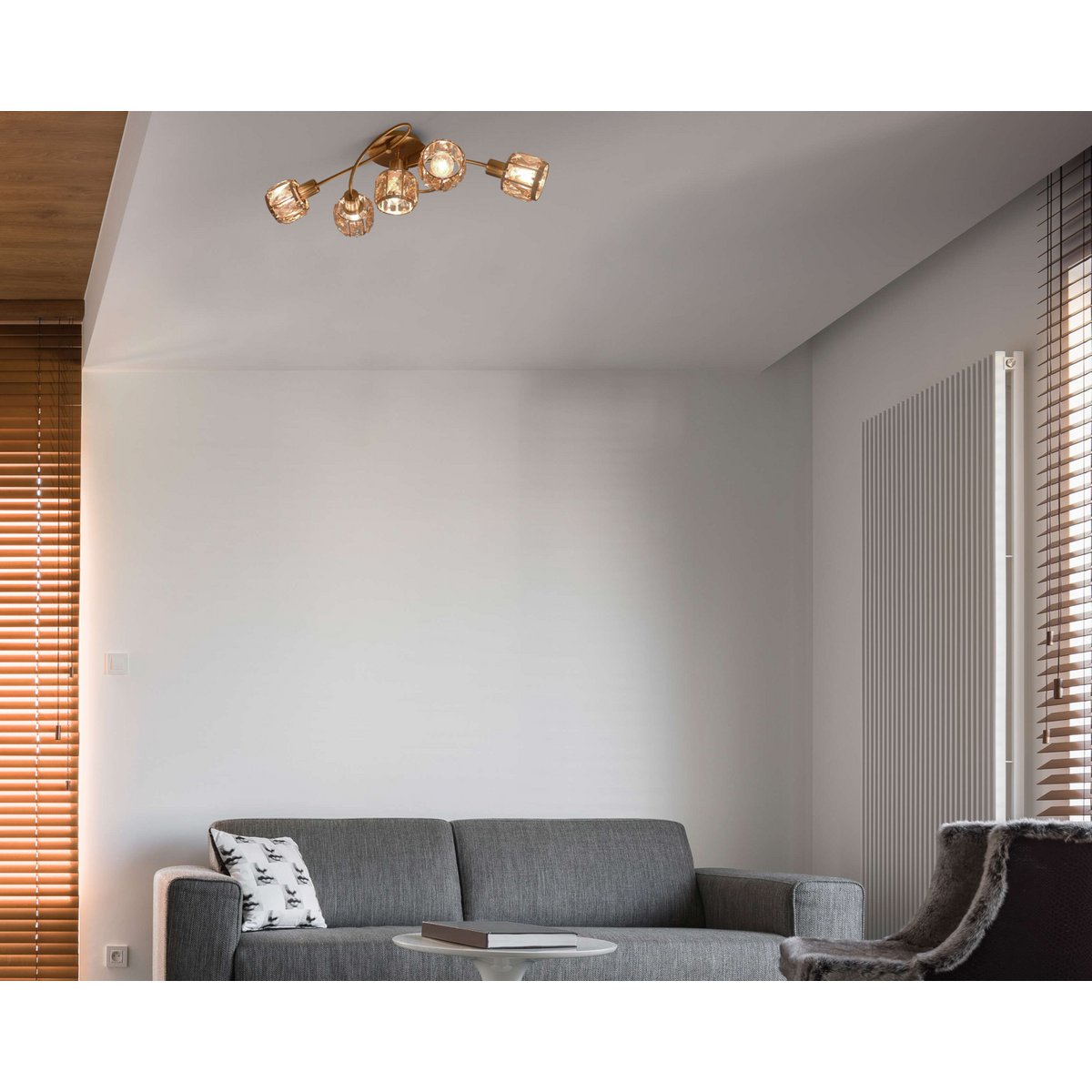 5-geleide plafondlicht "Josefa", metalen plafondlamp en glas in roestvrijstalen look, met E14-versie Filamentlampen inbegrepen, voor woonkamer, eetkamer, hal of gang 61 x 36 x 21 cm