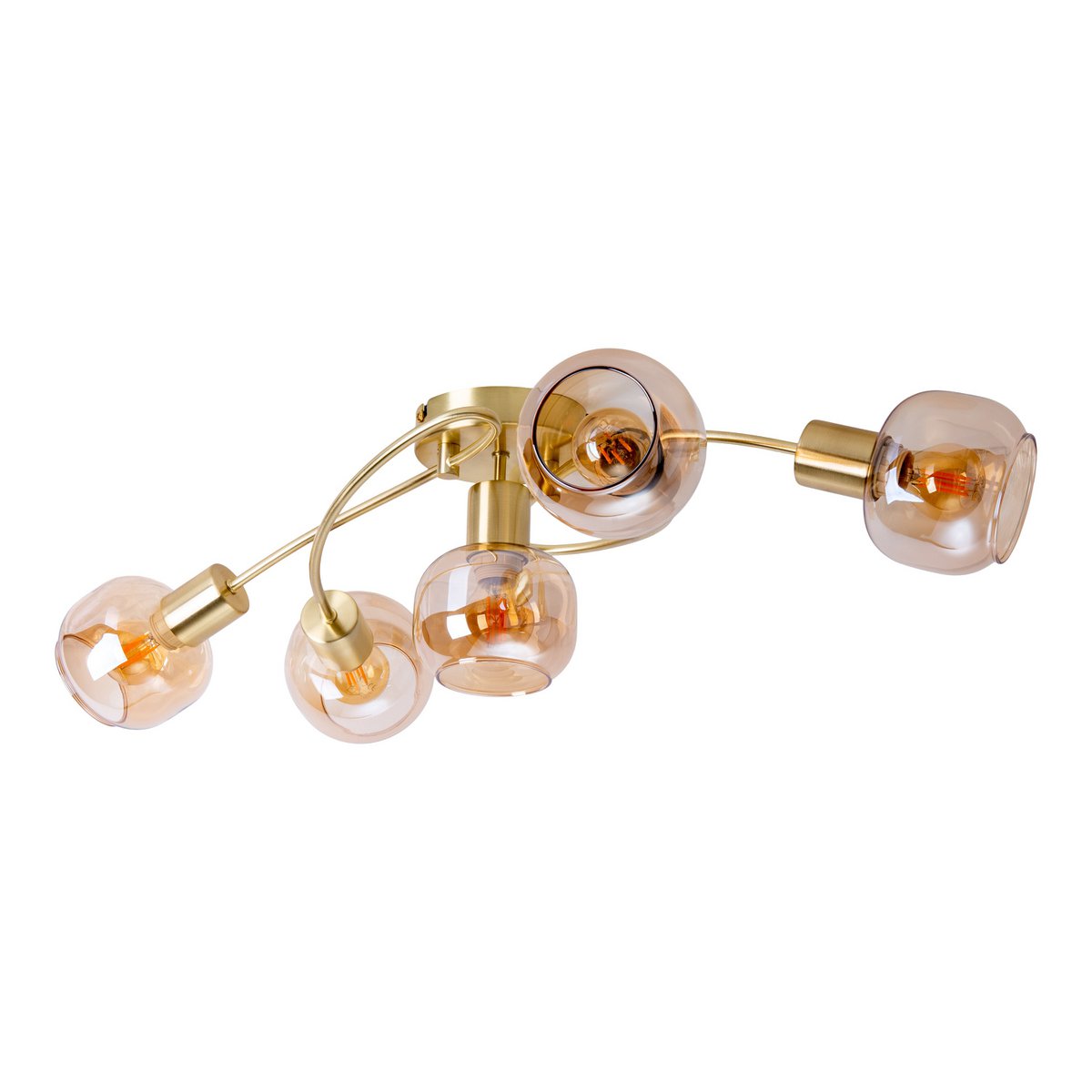 5er spot/plafondlamp "libby" messing, klassiek plafondlamp gemaakt van messing gekleurd metaal en getinte glas in barnsteen, met E14-aansluiting, voor eetkamer, woonkamer, gang of kantoor, 65,5 cm lang