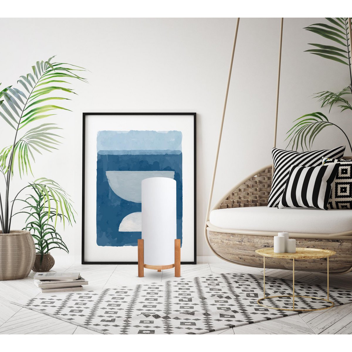 Ackitical Lamp "Madita" 48 cm hoog, in wit/natuur, met geïntegreerde LED, dimbaar met aanraaksensor