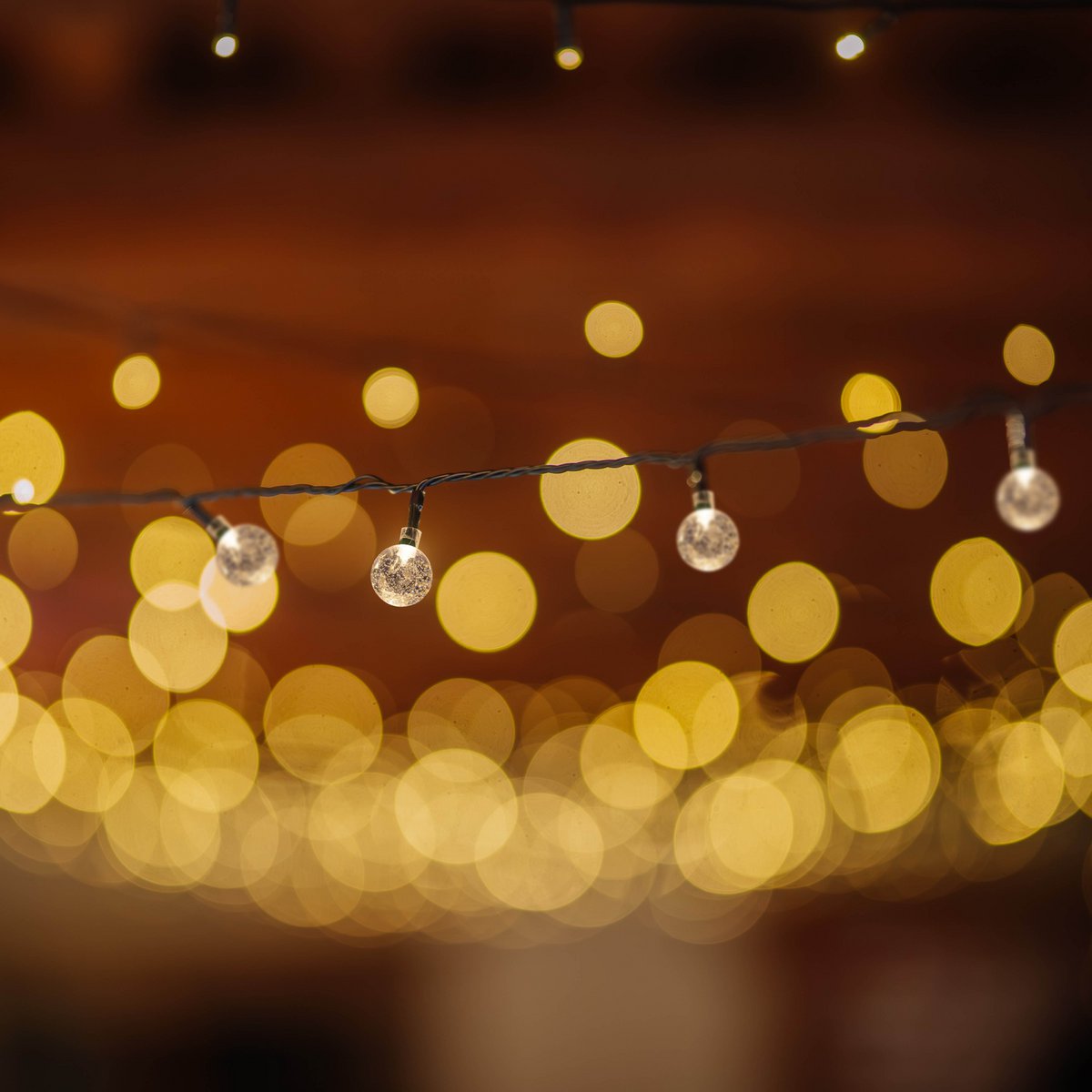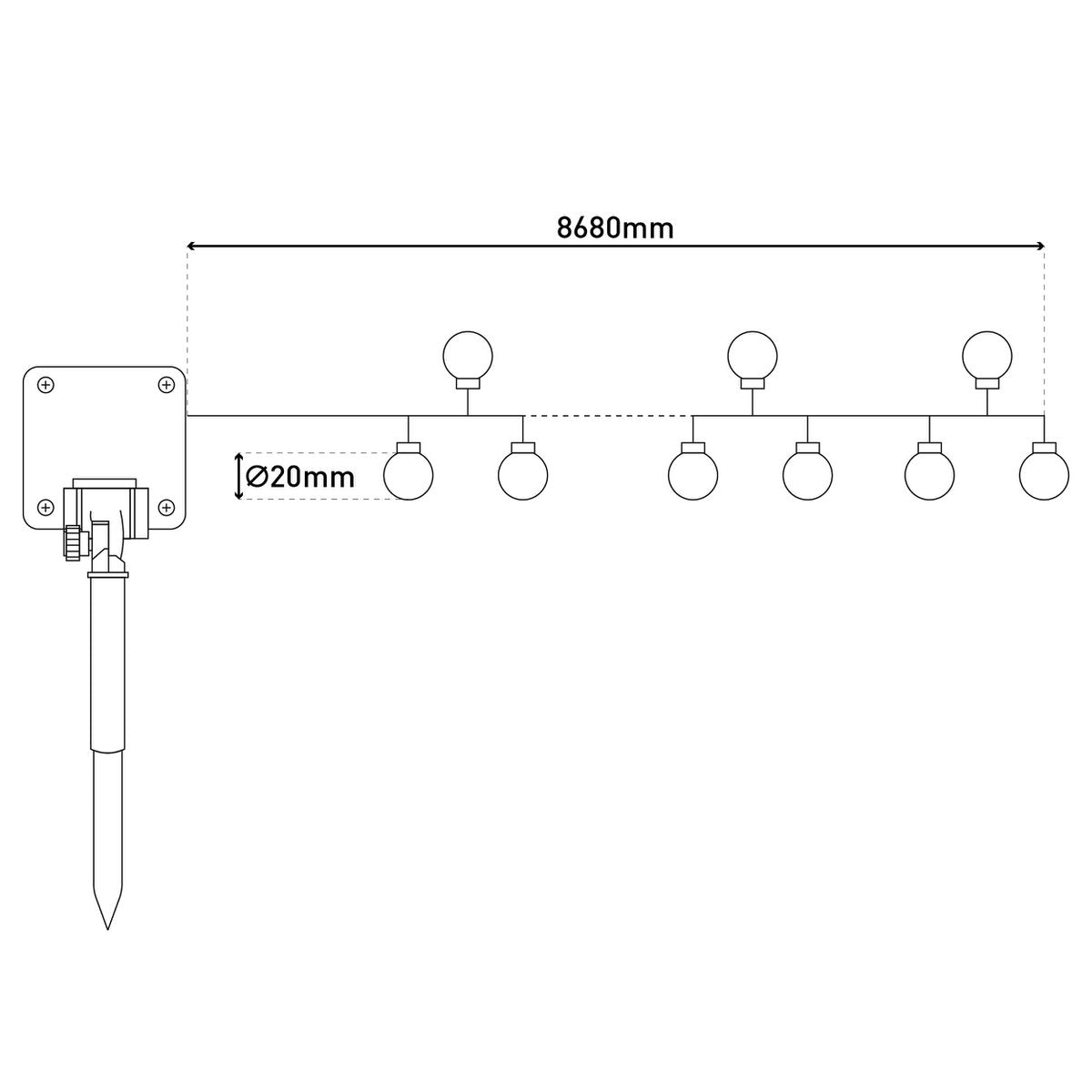 Buiten lichte keten met decoratieve ballen in glazen look, 868 cm lang, warm wit,