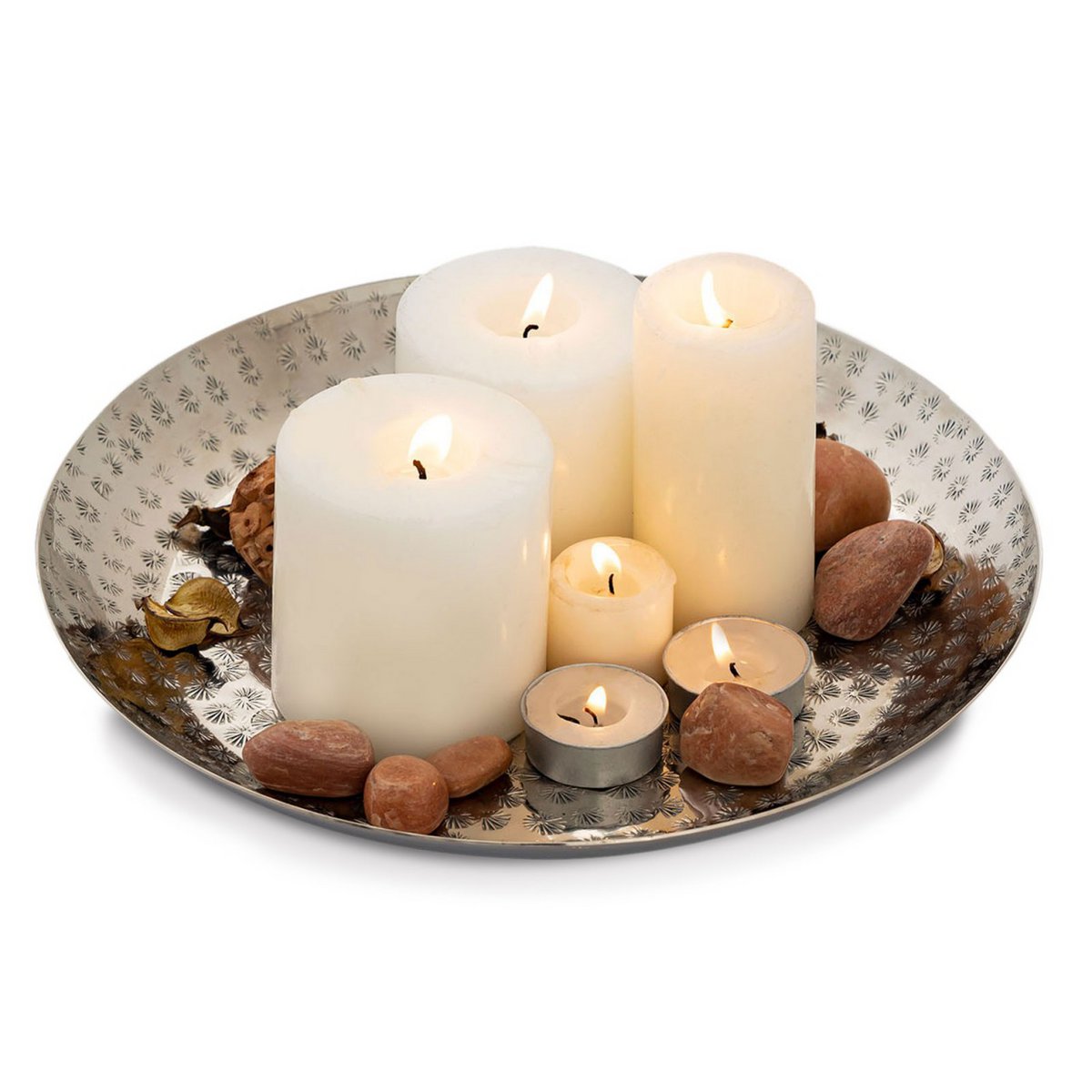 Decoratief dienblad Ø 28 cm rond gouden of zilveren decoratiebaal Serveer dienblad metalen kaarslichtlade