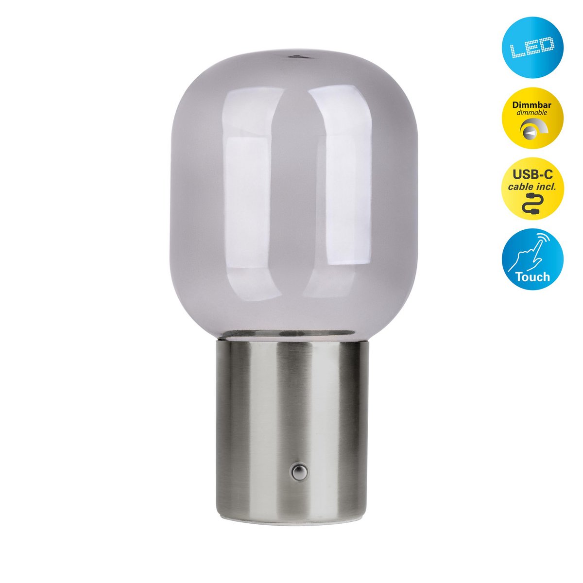 Draadloos tafellicht "Albero" decoratief tafellicht gemaakt van chroomkleurig metaal en glas met stevig geïnstalleerde LED's, dimbaar met aanraaksensor, 25 cm hoog