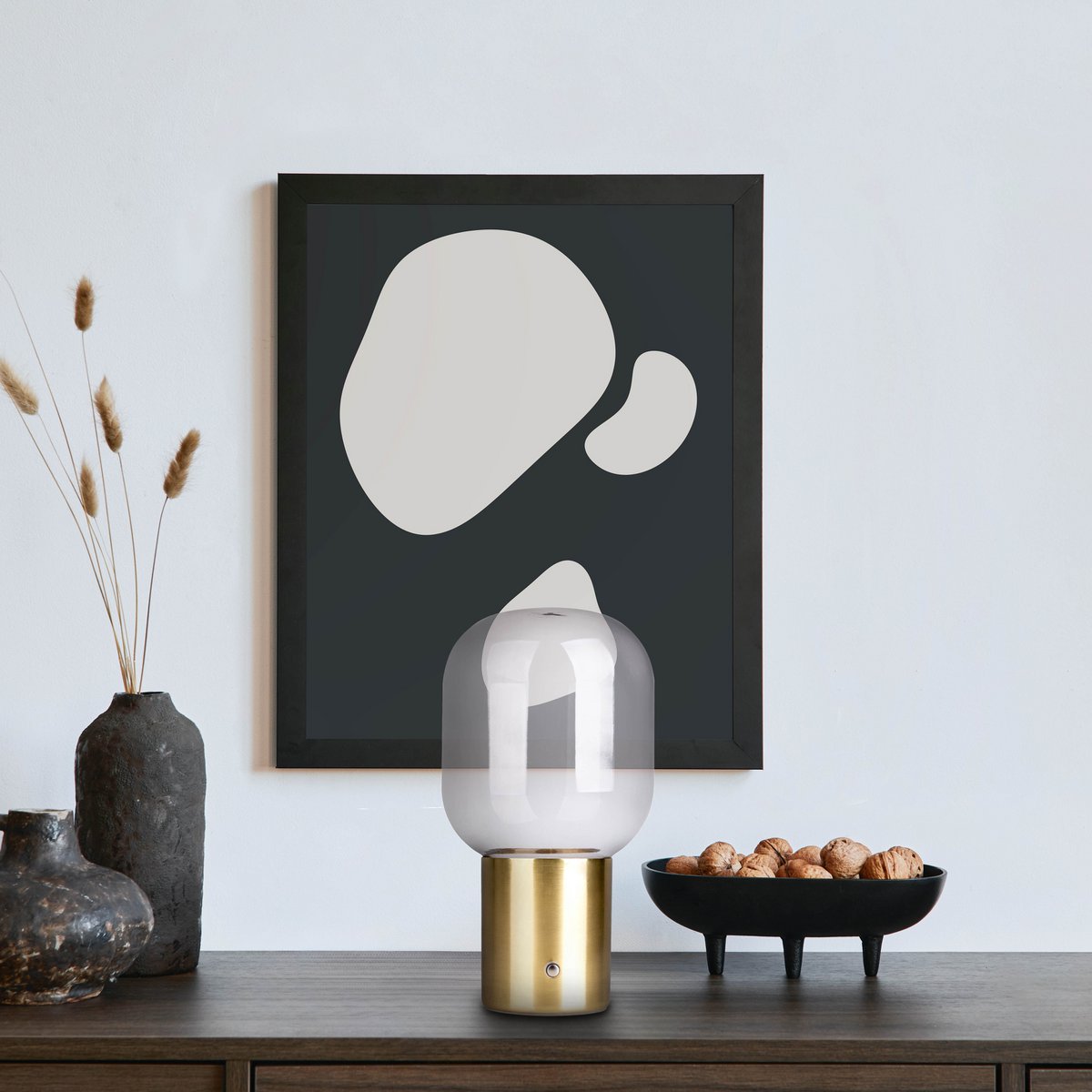 Draadloos tafellicht "Albero" decoratief tafellicht gemaakt van messing gekleurd metaal en glas met stevig ingebouwde LED's, dimbaar met aanraaksensor, 25 cm hoog
