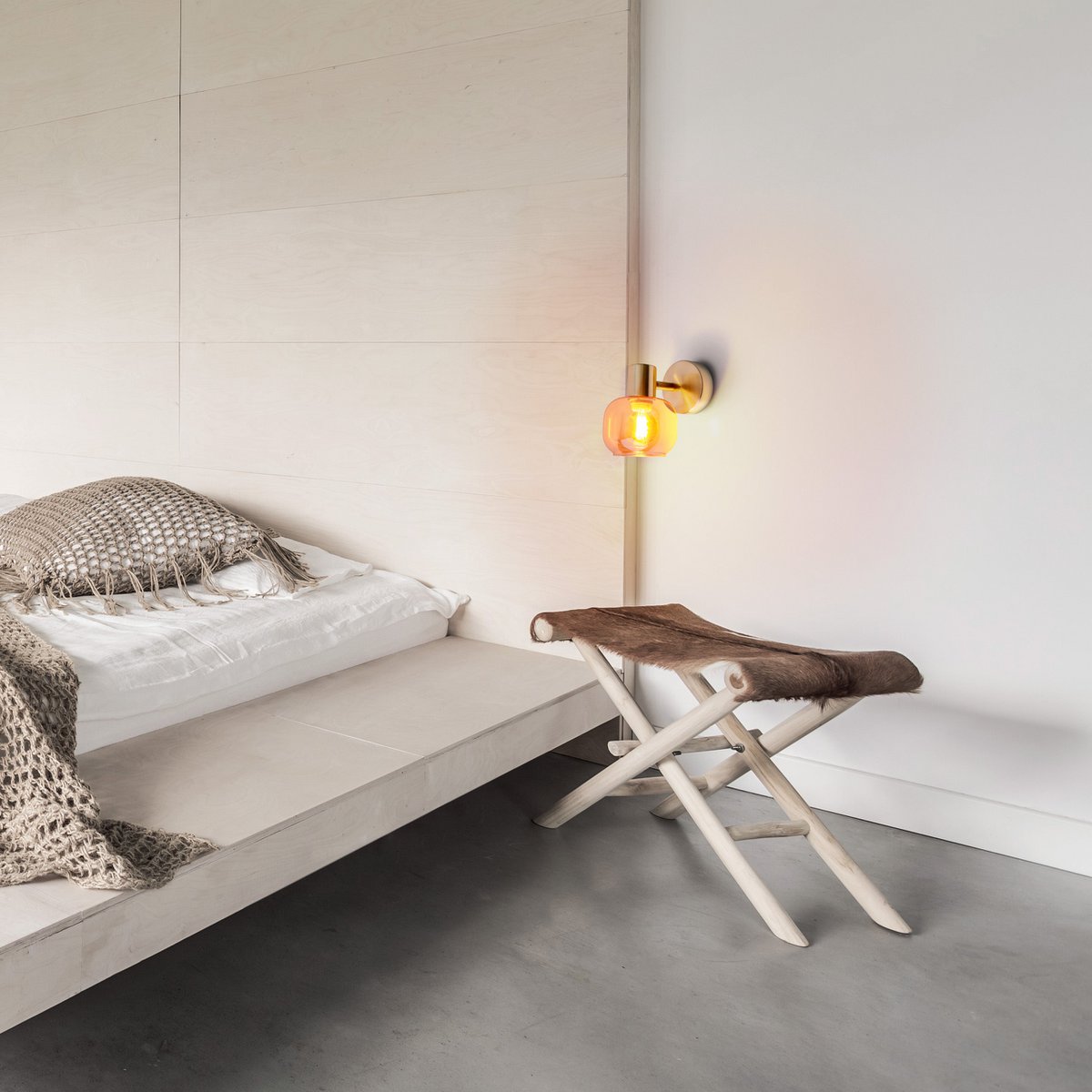 Glazen wandvlek "Libby", klassieke wandlamp gemaakt van messing gekleurd metaal en getinte glas in barnsteen, met E14-aansluiting, voor eetkamer, woonkamer, gang of kantoor, 16 cm