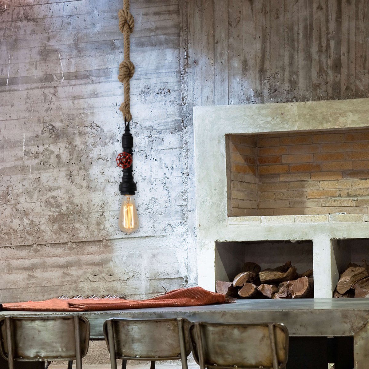 Hanger lamp "regia", black metal, henneptouw, E27 -versie, verlichting voor woonkamer, jeugdruimte of kantoor