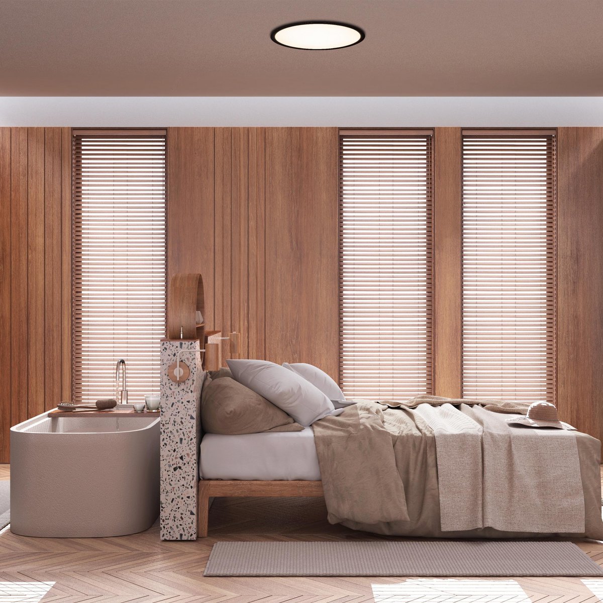 Het LED-plafondlicht "Carlo" met RGB-backlight, Ø van 29,3 cm, klassiekmoderne plafondlicht gemaakt van zwart/wit plastic met veel functies, b.v.