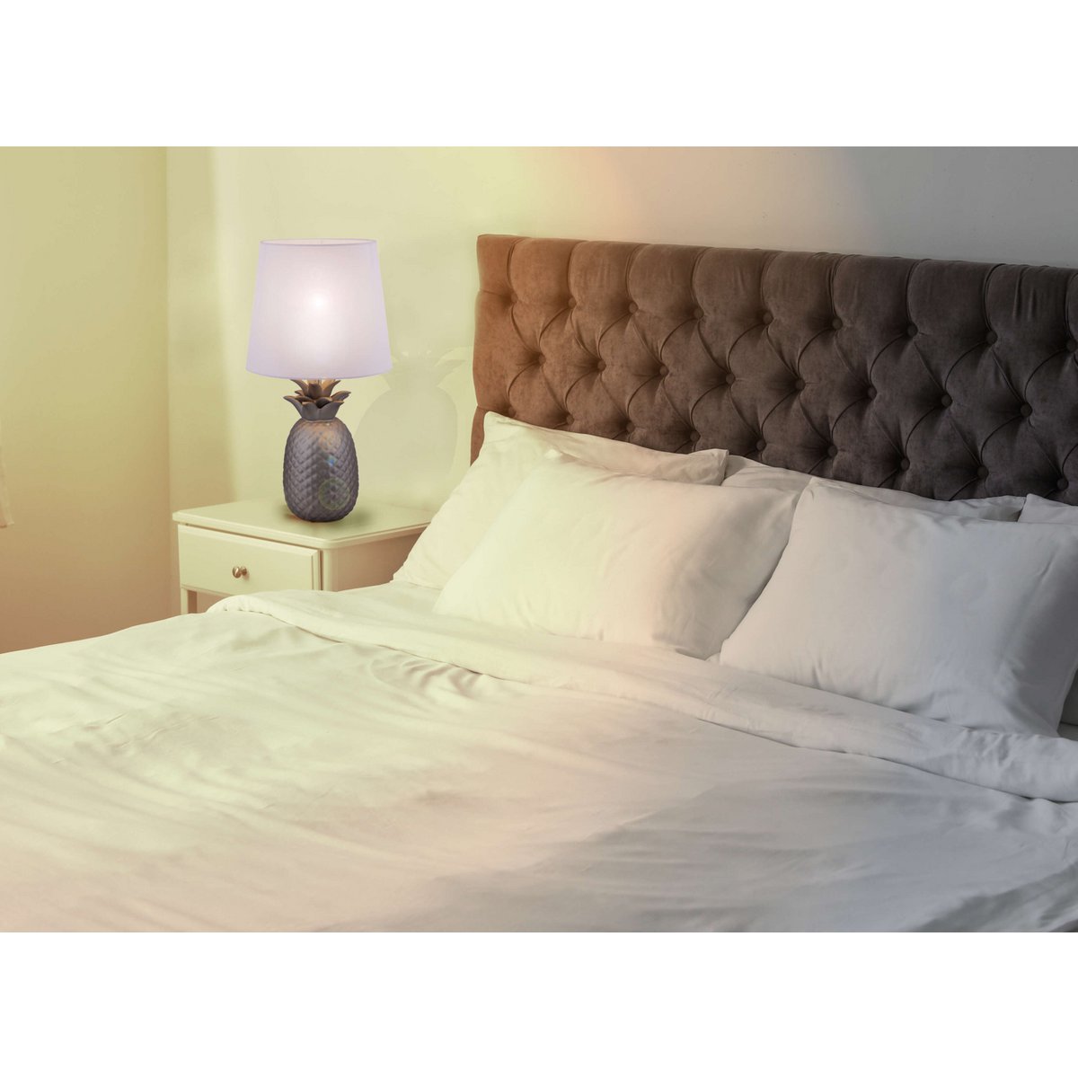 Keramisch tafellicht "ananas", keramische tafellamp met zilverkleurig glazuur en wit stofscherm, met E14-aansluiting, voor eetkamer, woonkamer, gang of kantoor, taflamp 45 cm hoog