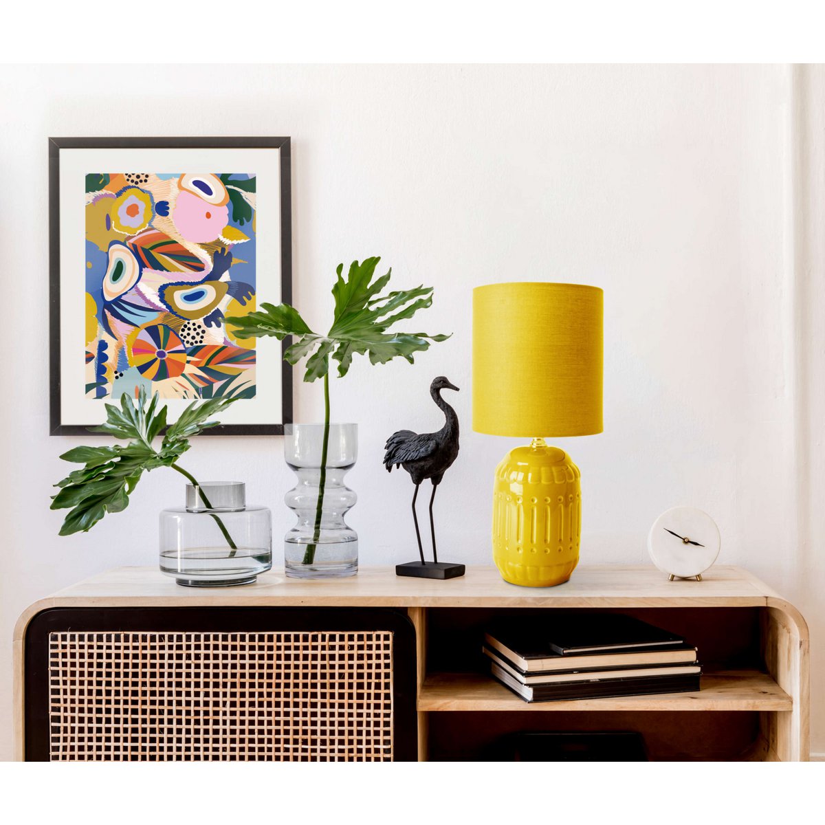 Keramische tafellamp "Erida", tafellamp gemaakt van keramiek, geel, met E14 -versie, voor eetkamer, woonkamer, gang of kantoor, tafellampen binnen