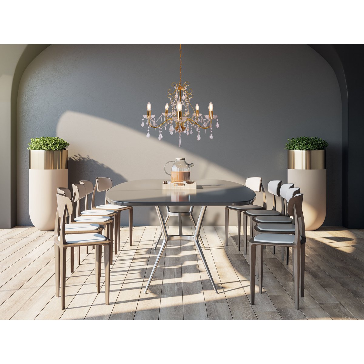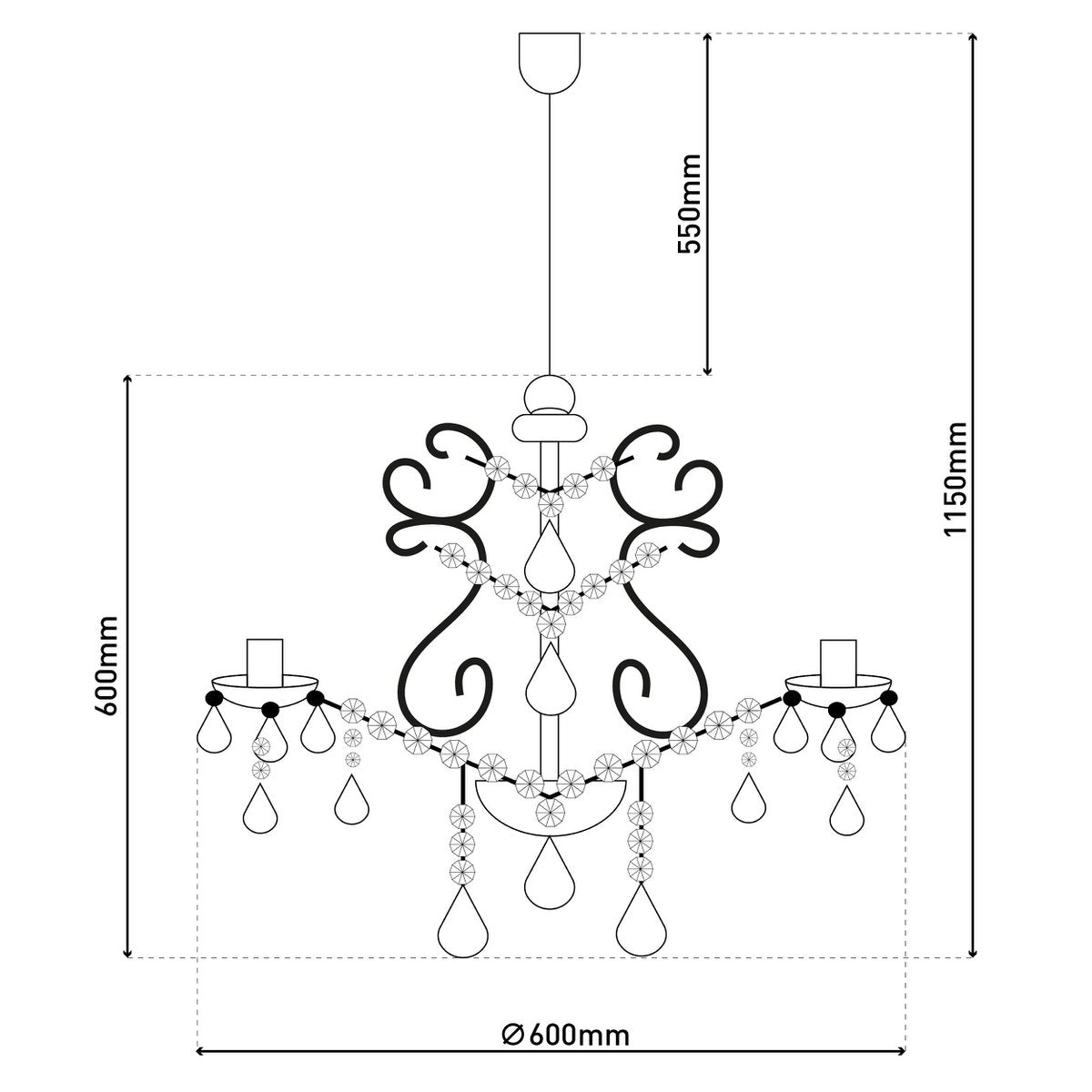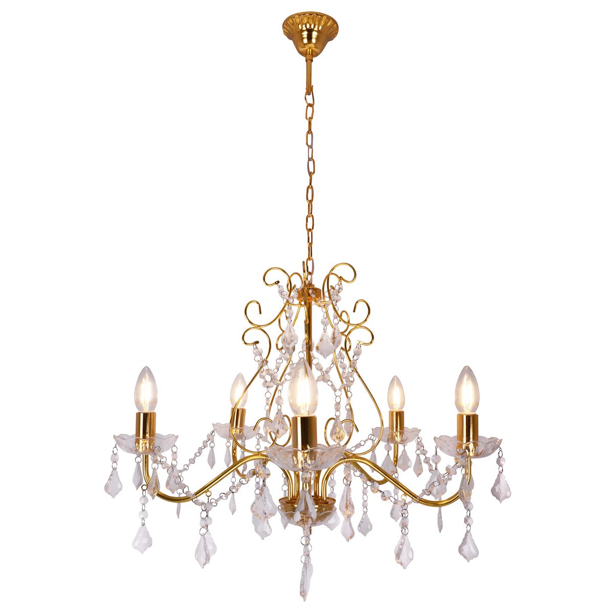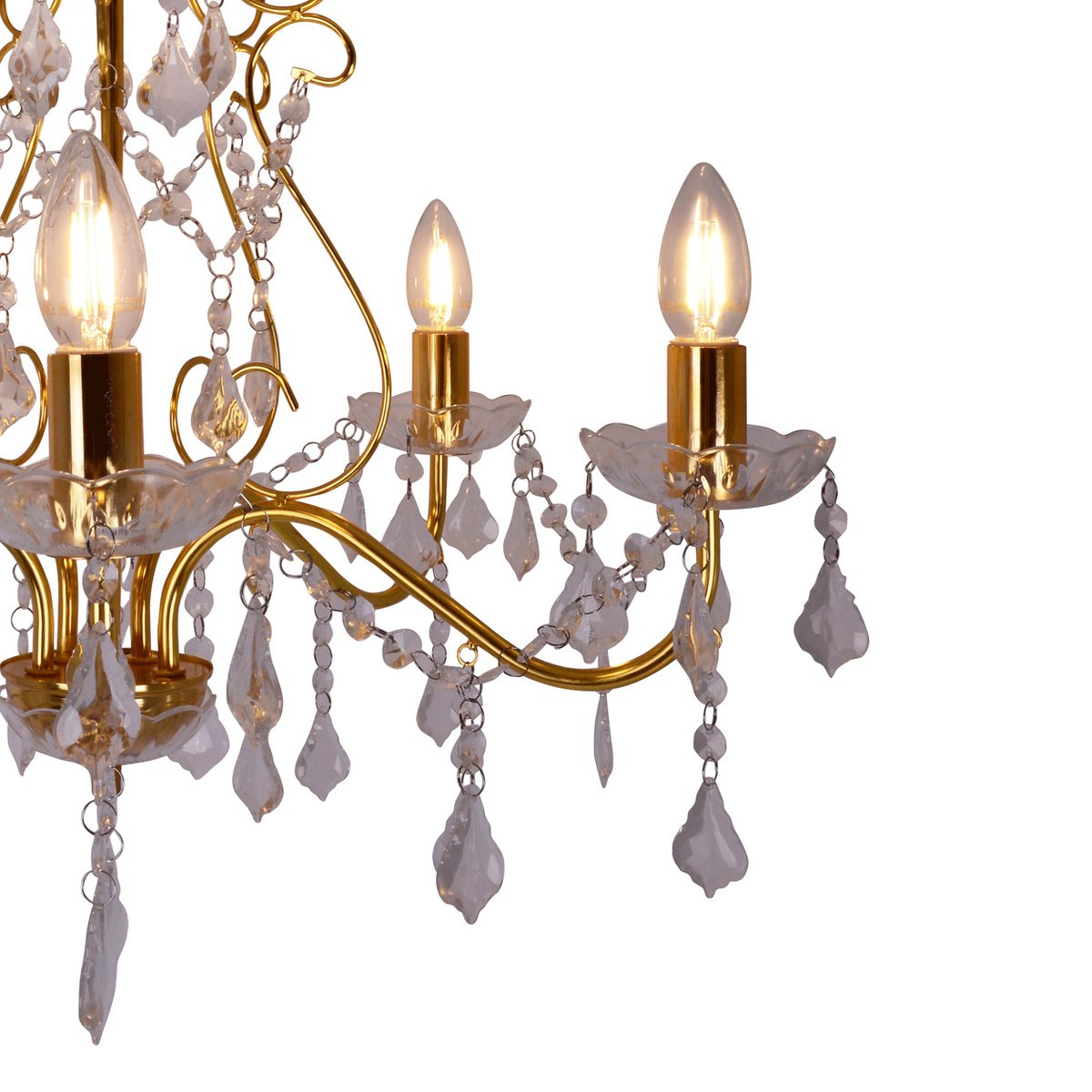 Krone 5flg. "Lucia" met gordijn, gemaakt van metaal en plastic in goud, met E14 -versie, verlichting voor eetkamer, woonkamer, gang of kantoor