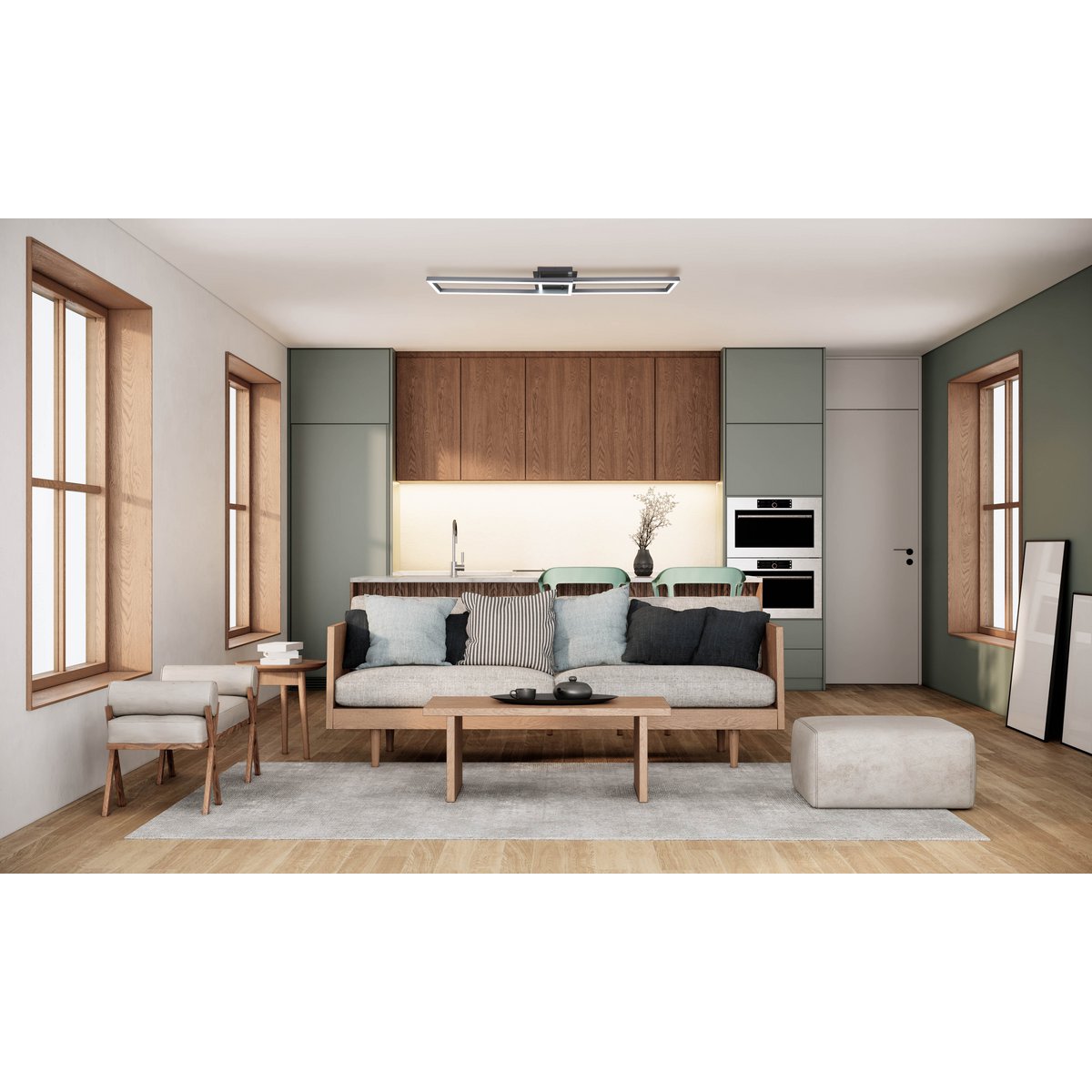 LED CCT-plafondlamp + RGB-backlight "Bantry" met veel functies, 115 cm lang, inclusief afstandsbediening