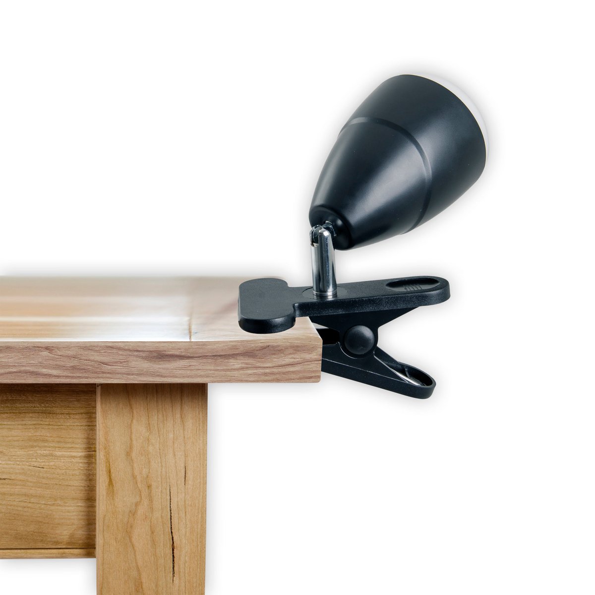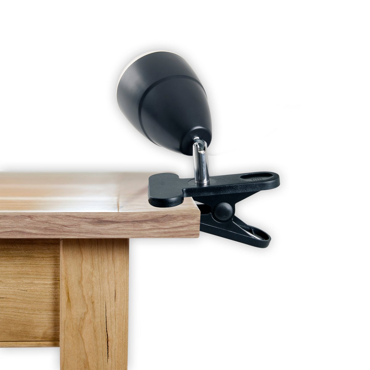 LED -klemlamp gemaakt van metaal en plastic in het zwart, met geïntegreerde LED's