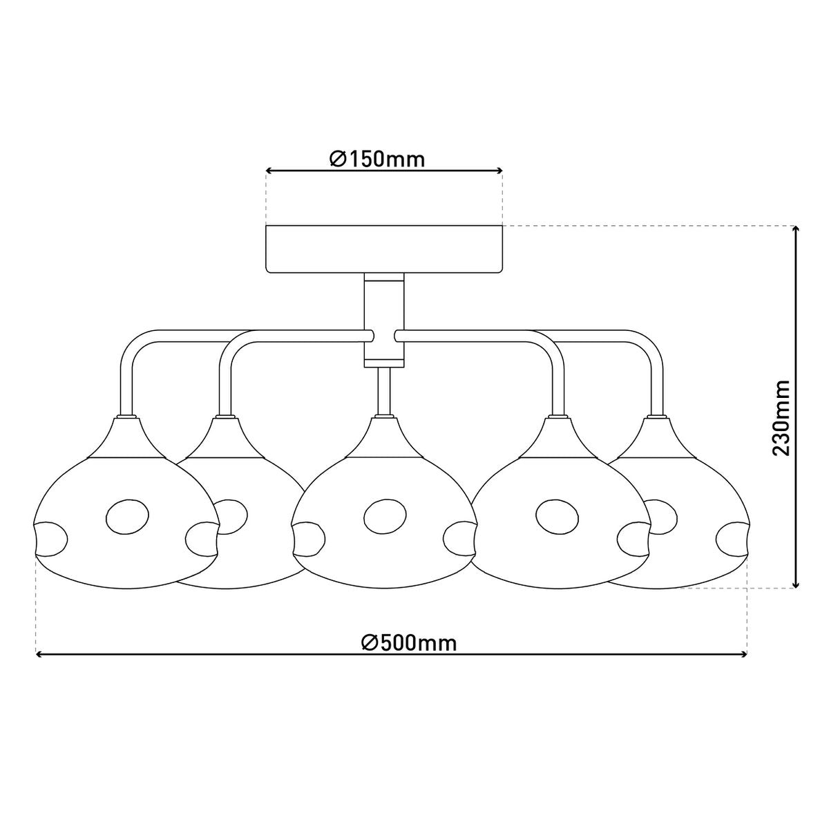LED-plafondlamp 5-flame "varna", plafondlamp gemaakt van messing gekleurd metaal en irisglas, met stevig geïnstalleerde LED's, 50 cm diameter, stijlvolle verlichting voor woonkamer, eetkamer of gang