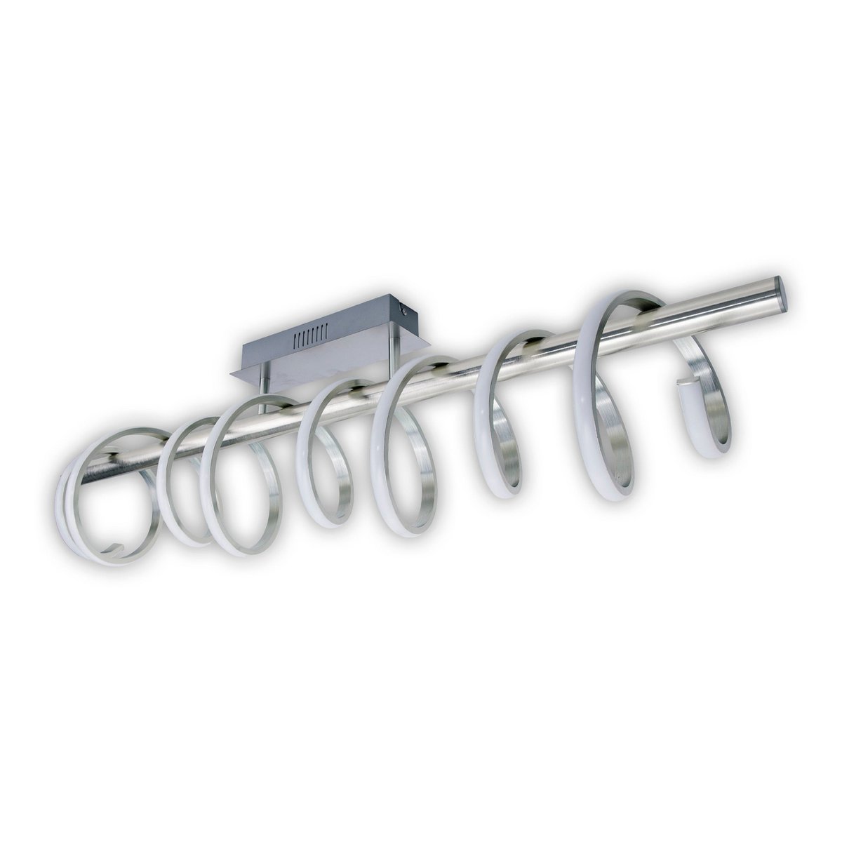 LED -plafondlamp "Belleza", moderne metalen plafondlamp en plastic in nikkel mat en wit, met stevig gebouwd -in LED's, 100 cm lang. De ideale verlichting voor woonkamer, eetkamer of keuken.