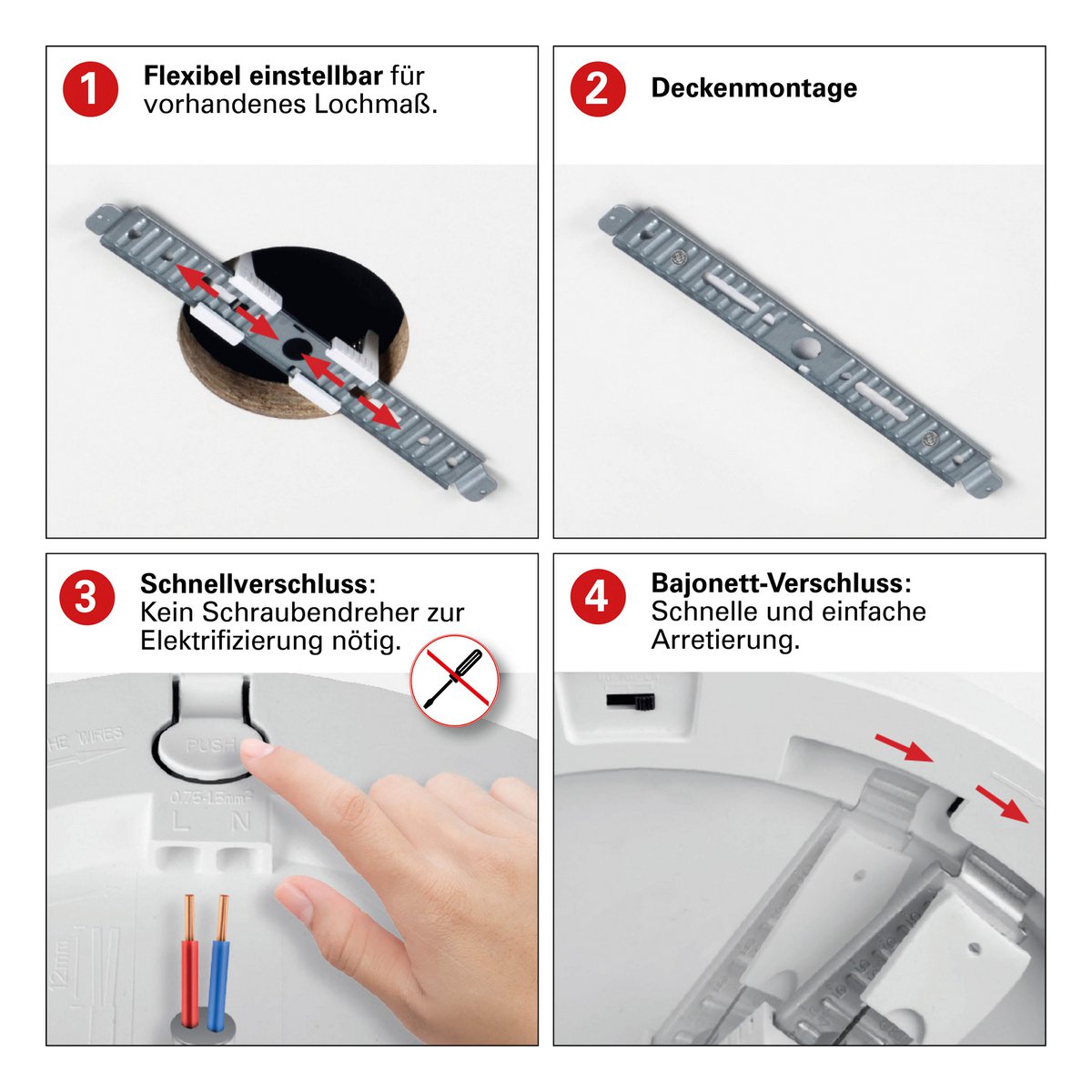 LED -plafondlamp "bonus", functie, metalen plafondlamp en plastic, ringen in chroom en wit kunnen worden gewijzigd, met stevig ingebouwde LED's, 22,5 cm diameter