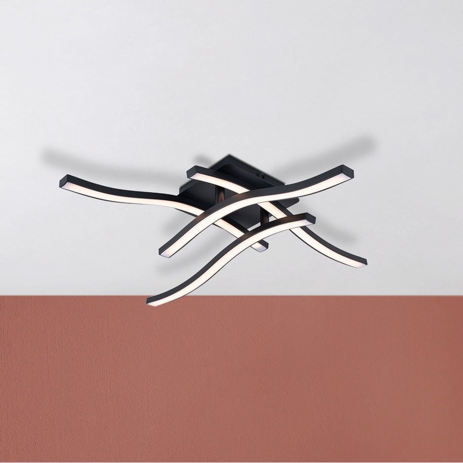 LED -plafondlamp "Onda" S: 45 cm, plafondlamp gemaakt van metaal en plastic in zwart "LED -vaste, verlichting voor woonkamer, eetkamer of kantoor 45 x 45 cm