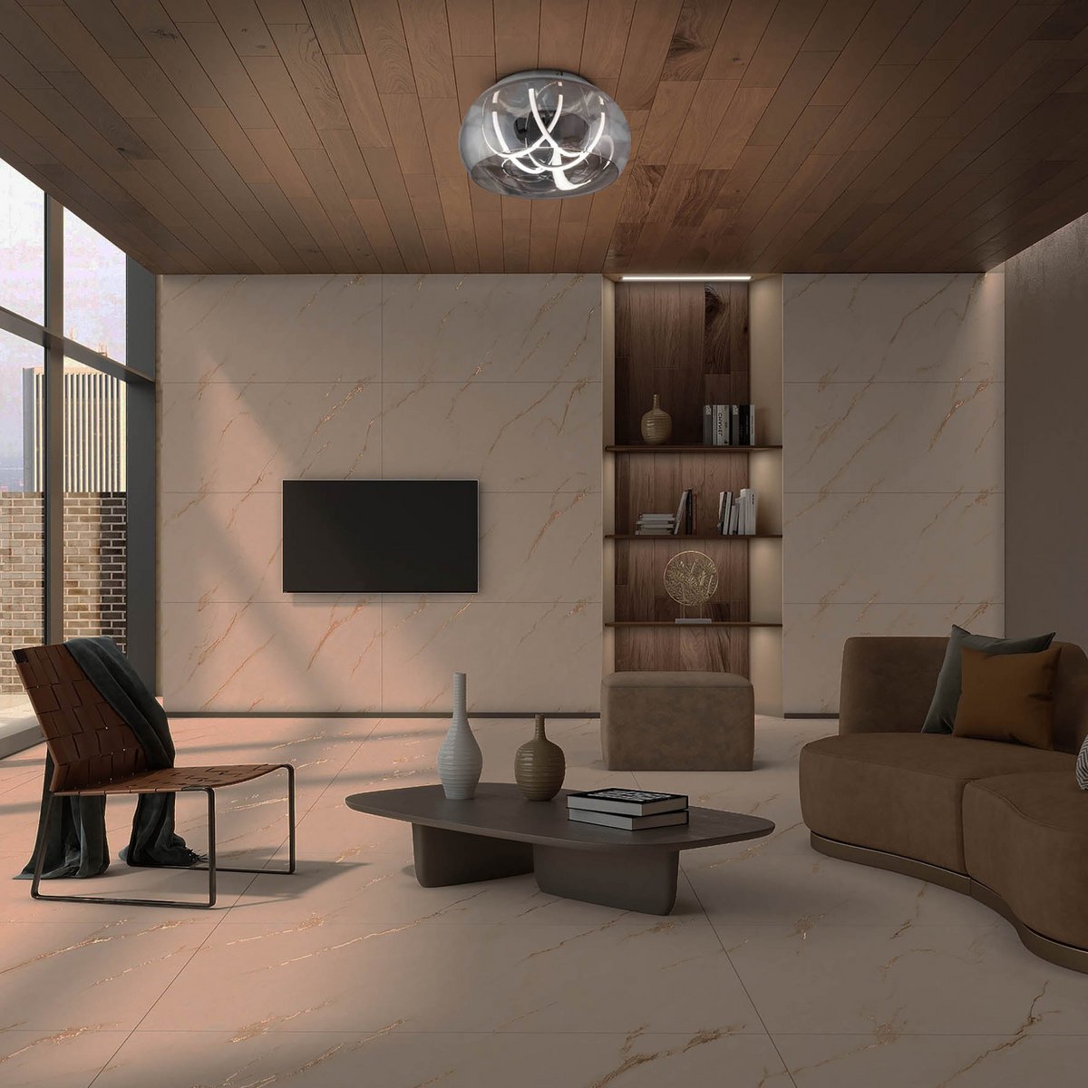 LED -plafondlicht "Malou" Ø 45 cm, 23,5 cm hoog, gemaakt van metaal, rookglas, geïntegreerde LED's, warm wit