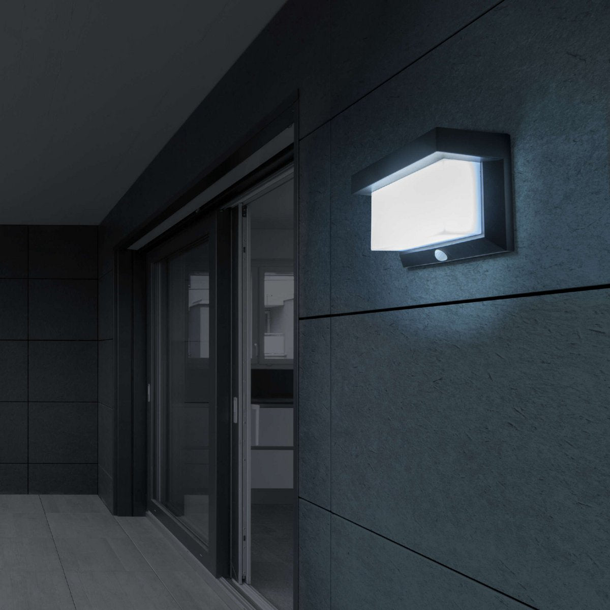 LED Solar Buitenwandlamp met bewegingsdetector, voor buiten, wandlamp - Plastic in zwart, met geïntegreerde LED