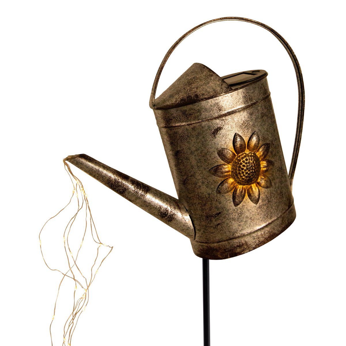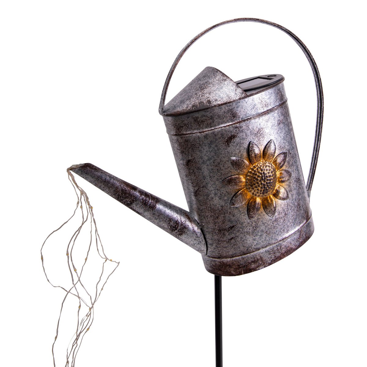 LED Solar Earth Skeer (waterhond) H: 110 cm gegalvaniseerd, voor buiten, gemalen spies gemaakt van metaal en plastic in zilver, met geïntegreerde LED