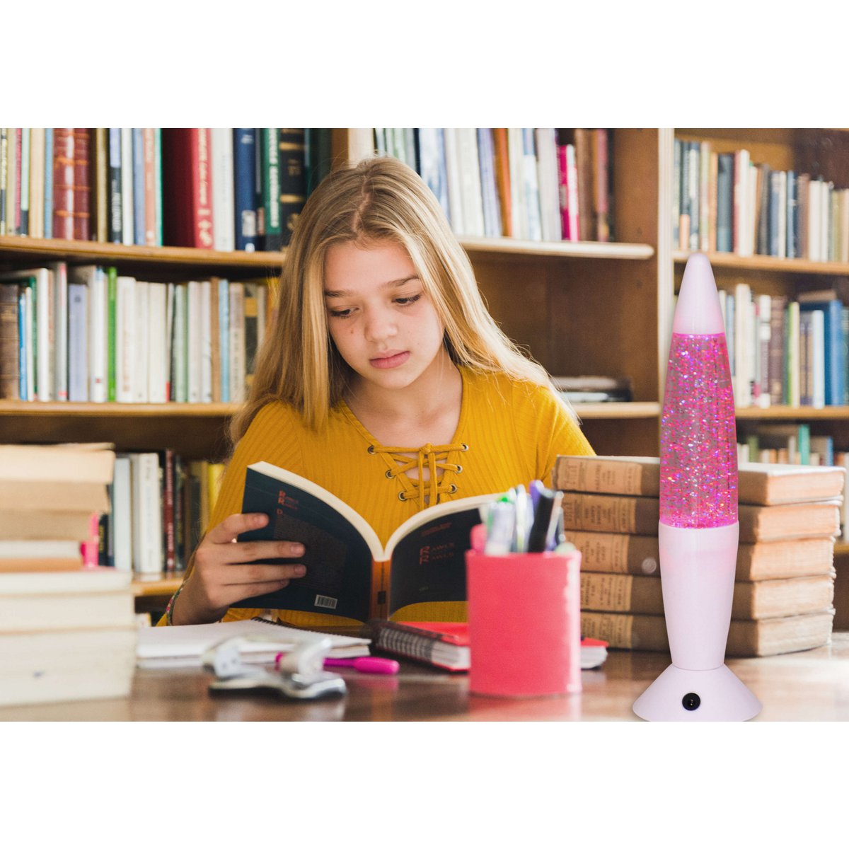 LED-tafellicht "Glitter", de decoratietafellamp gemaakt van metaal en plastic, ongeveer 36 cm hoog, met stevig ingebouwde LED's, doneert kleurrijk licht met "glitter", effectverlichting voor woonkamer, kantoor, kinderkamer of nachtkastje