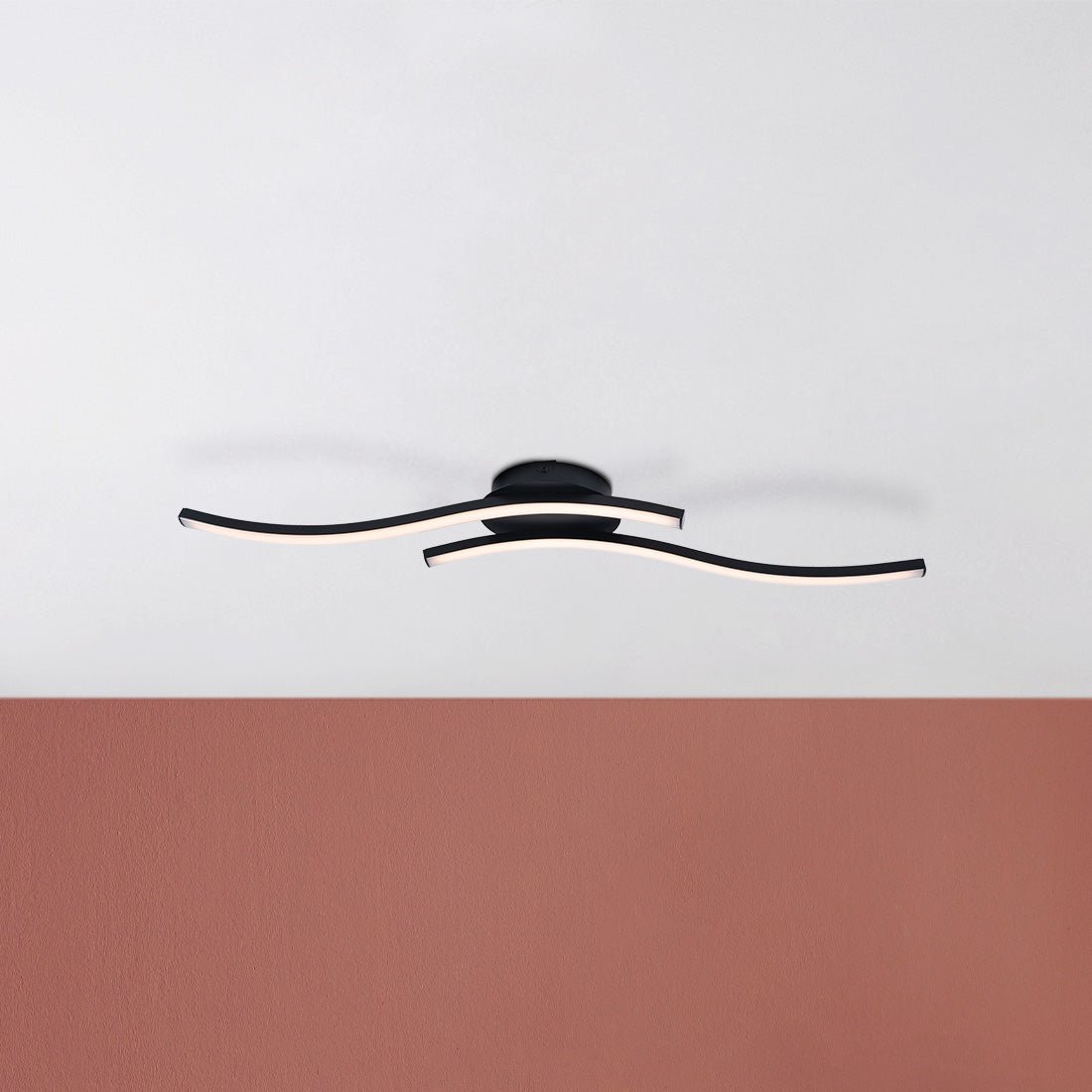 LED-wand/plafondlamp "Onda", plafondlamp gemaakt van metaal en plastic in zwart, met stevig ingebouwde LED's, verlichting voor woonkamer, eetkamer of kantoor 65 cm lang