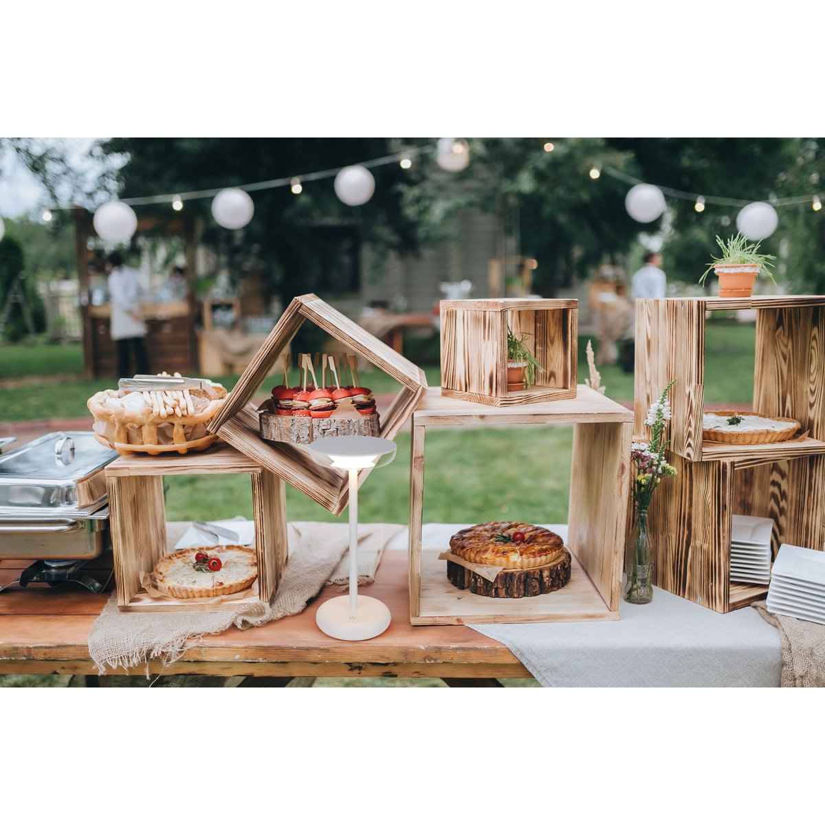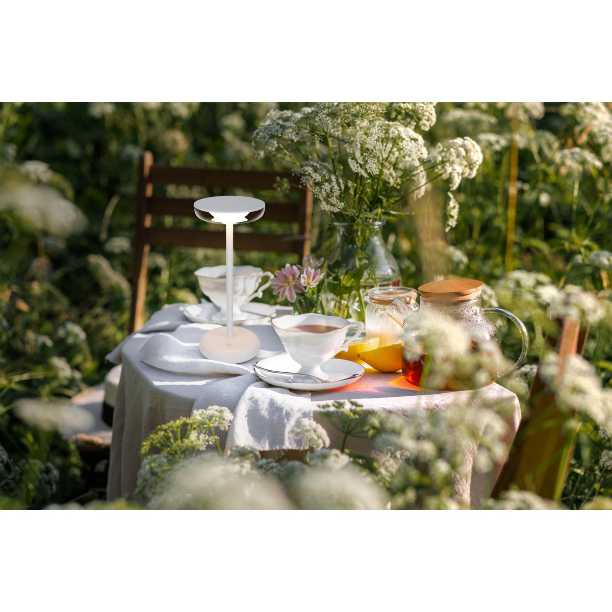 Noteloze tabletlicht "PASI" voor buiten en binnen, gemaakt van metaal en plastic in wit, dimbaar, met aanraking en geheugenfunctie, ca. 26 cm hoog