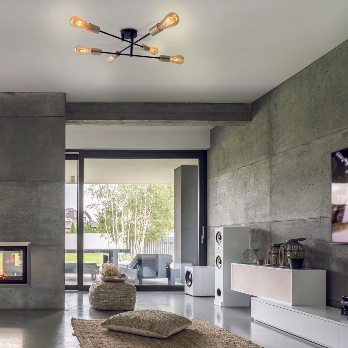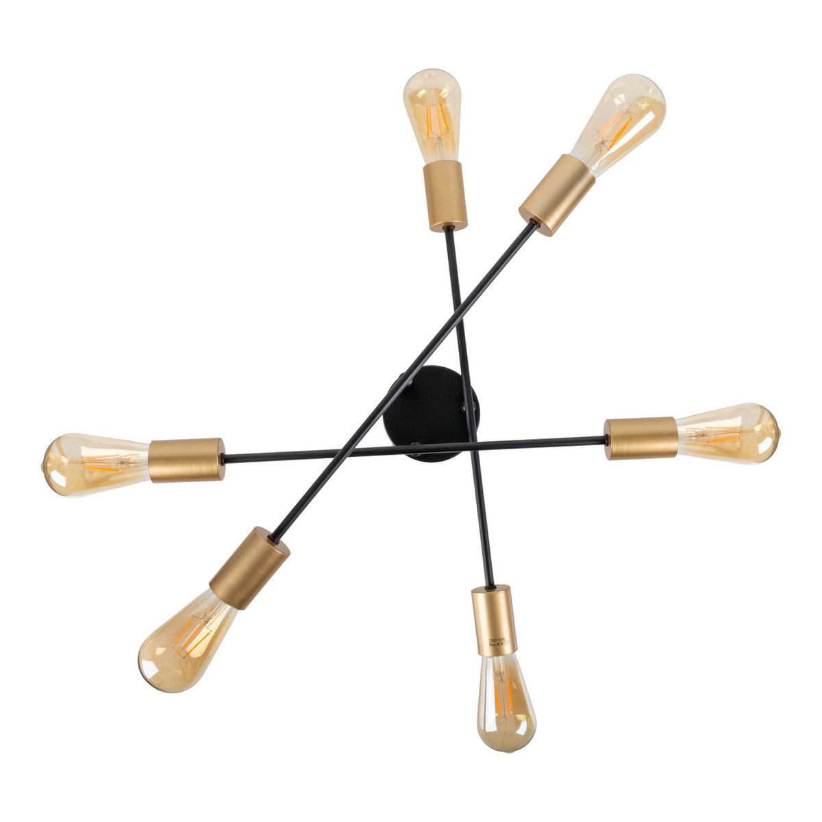 Plafondlicht "Modo" 6-flame gemaakt van metaal in zwart, versies goud, E27-aansluiting, plafondlamp voor woonkamer, eetkamer, keuken, gang, gang of kantoor met een Øvon 54,5 cm