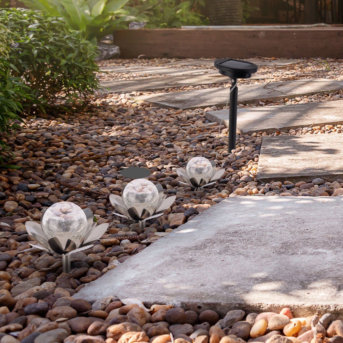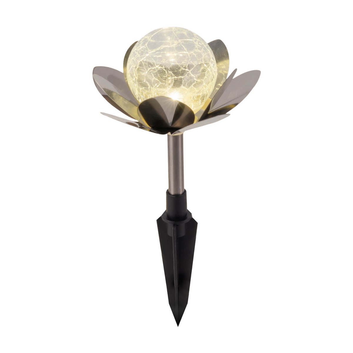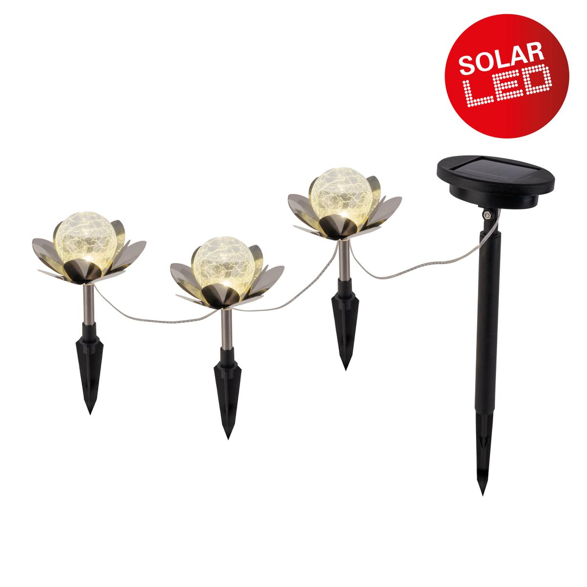 Solar-deco-earthspieß 3 set "lule" Ø ca. 10 cm, ca. 20 cm hoog, roestvrij staal, glas met een knettereffect