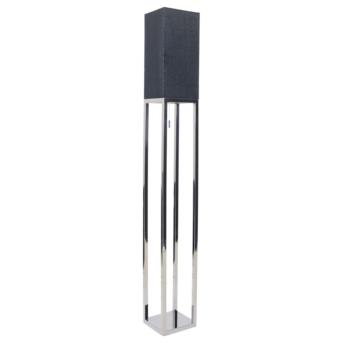 Staande lamp "Alfa", moderne vloerlamp gemaakt van metaal en textiel in chroom/donkergrijs, met E27 -aansluiting, 150,5 cm hoog, chique lamp voor gang, woonkamer en kantoor