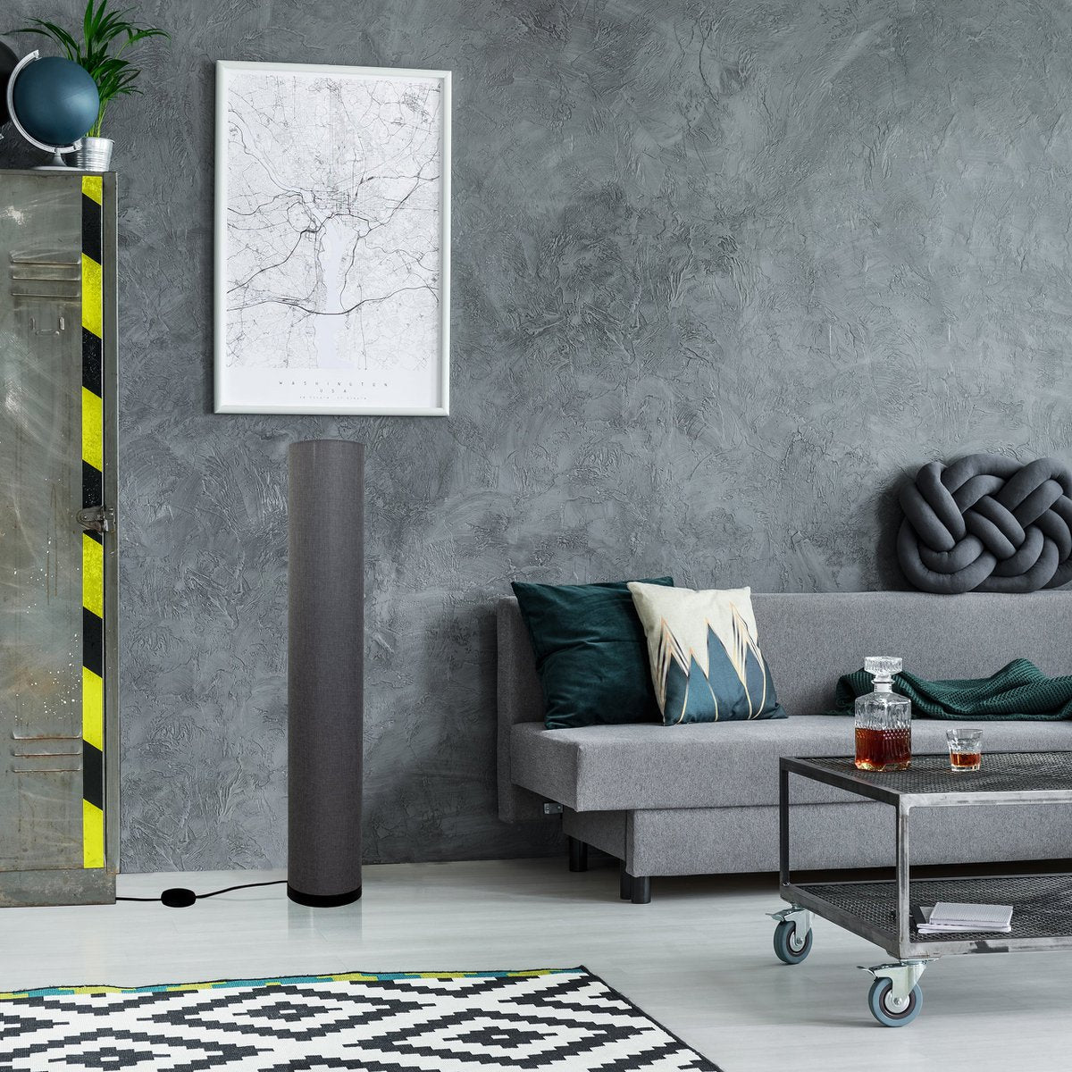 Staande lamp "Beate" Gray gemaakt van metaal en een tekstblazer in grijs, E27 -aansluiting, vloerlamp voor eetkamer, woonkamer, gang of kantoor, ca.