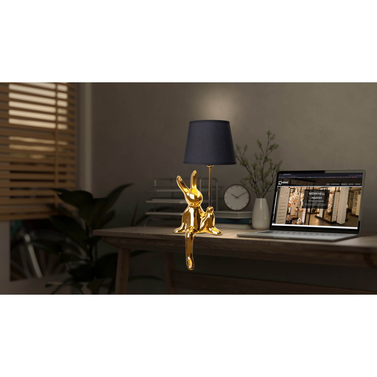 Tafellamp "helge" Ø 18 cm, hoogte ca. 45 cm, gemaakt van keramiek in zwart en gouden, zwarte tekstbladen