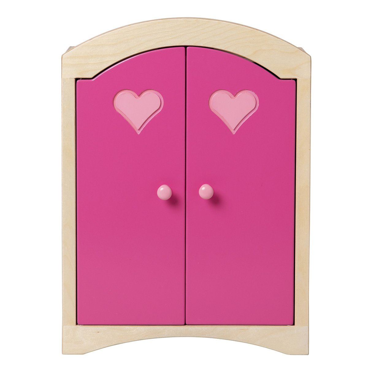 Van Dijk Toys houten speelgoed Poppenkledingkast - Naturel met roze (Kinderopvang kwaliteit)